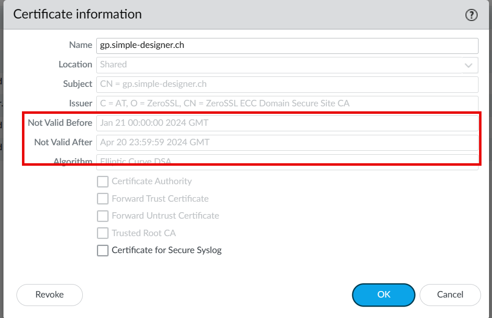 On the Palo Alto firewall, I have created a user with special permissions to handle the certificate updates. This user is specified within the script.